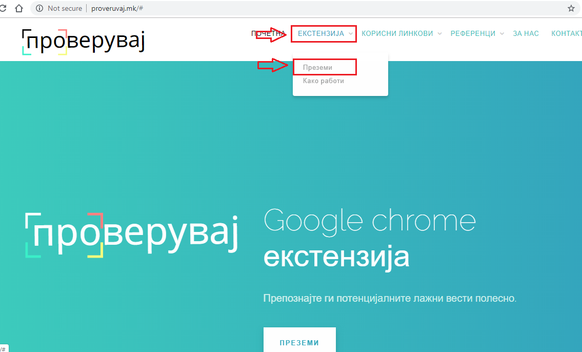 Проверувај претставува екстензија за Google Chrome пребарувачот која на автоматизиран начин ги пронаоѓа авторите, датумите и изворите на вестите на најпосетените македонски веб портали.