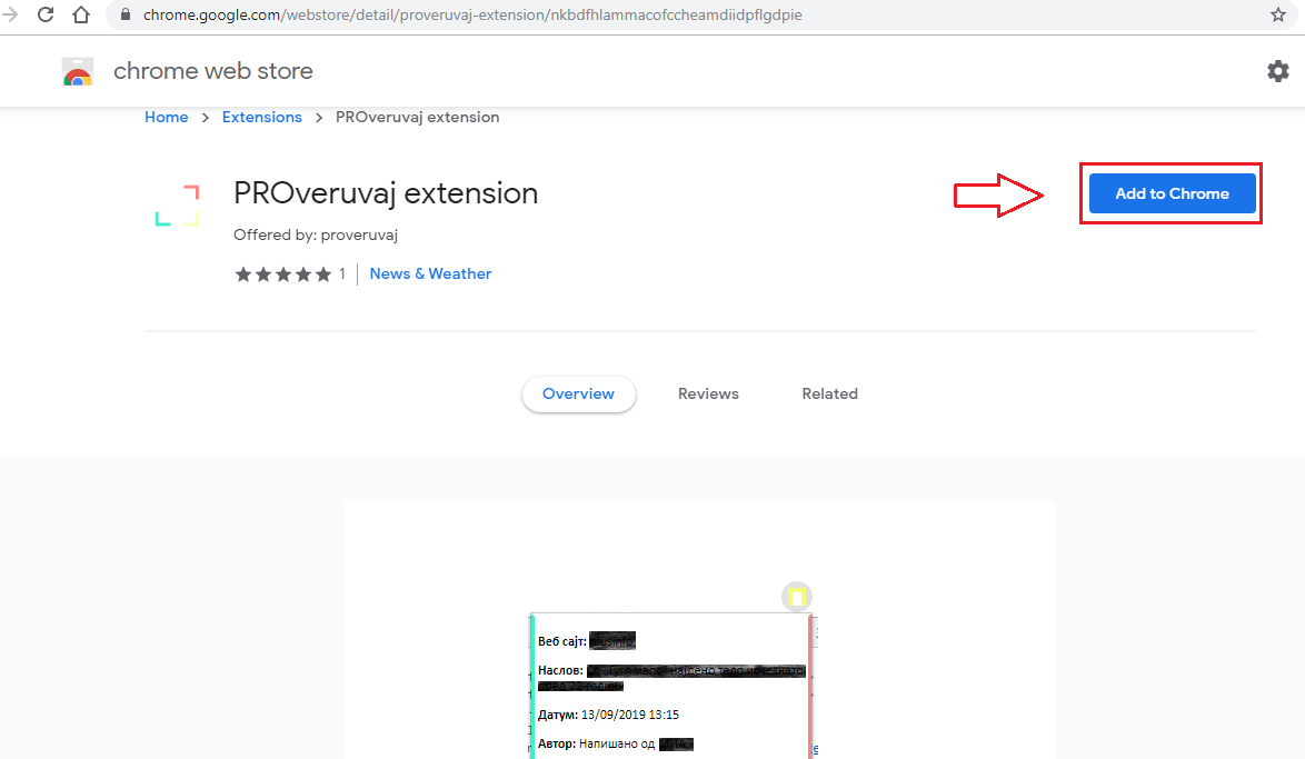 По избор на некој од начините за преземање на екстензијата, ви се отвора нова страница од Google Store од каде може истата да ја инсталирате само со избор на копчето Add to Chrome