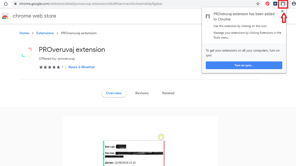 Ќе добиете информација дека екстензијата е успешно инсталирана.