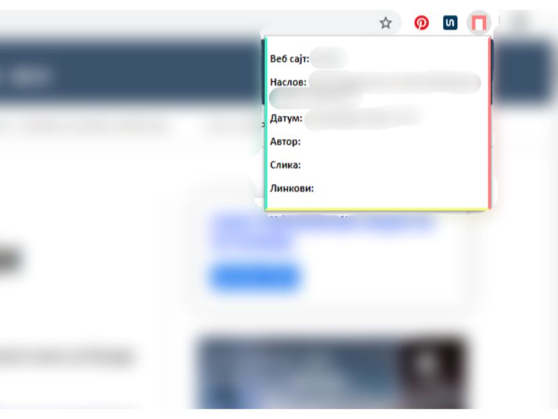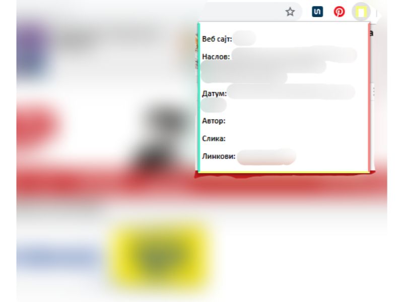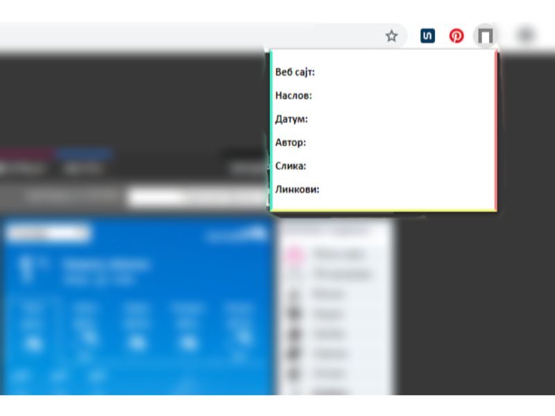 Со клик на иконата на Проверувај се отвора прозорец со информации за елементите на тековната веб страница.